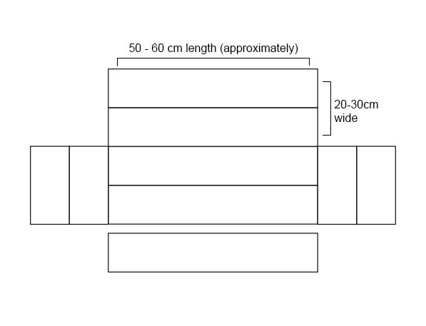 Here is a diagram to help you get an idea of our design. The sizes are approximate depending on your pet size and how big or deep you want the bed to be.
